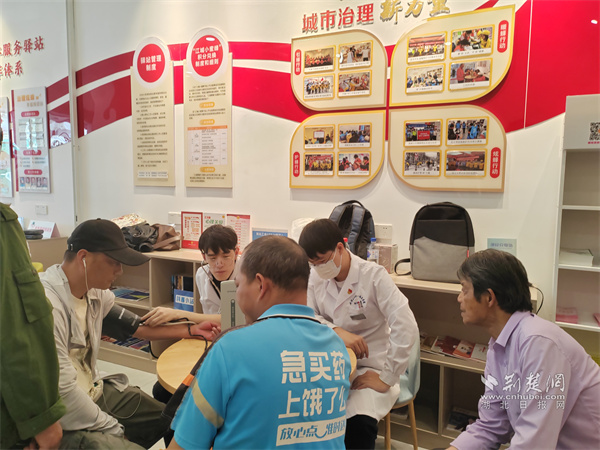 活动当天,来自武汉大学第一临床学院的专业医护人员来到驿站,为户外工作者们现场提供多样化健康服务。“送餐再忙也要记得定时喝水,避免长时间暴晒。”义诊区里,医护人员耐心进行血压、血糖测量、心肺功能听诊等基础体检和职业病筛查。检查过程中,医护人员细致询问他们的身体状况、工作强度和生活习惯,并给出相应的健康建议。
