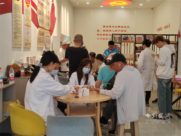 荆楚网(湖北日报网)讯(通讯员 郭倩)为传递对新就业群体的关心关爱,提升他们的健康意识和自我保健能力,4月16日下午,武昌区黄鹤楼街道联合武汉大学第一临床学院,在街道新就业群体服务驿站开展“健康护航·关爱同行”主题健康公益活动,为40余名快递、外卖员等户外工作者送去贴心关怀。