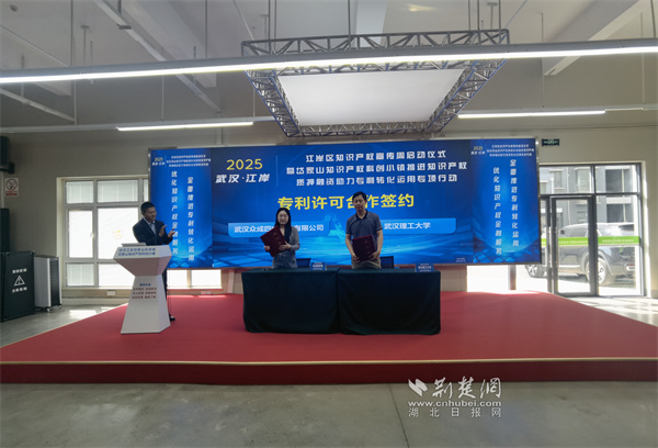 活动现场,武汉理工大学与3家科技型企业的专利许可合作签约仪式备受关注。在岱家山知识产权科创小镇的牵线搭桥下,该校9项涉及智能制造、新材料领域的发明专利正式 “走出实验室”,授权给本地中小企业使用。近年来岱家山科创小镇通过打造知识产权运营服务体系,已形成的全链条服务模式,有效破解了科技成果转化“最后一公里”难题。