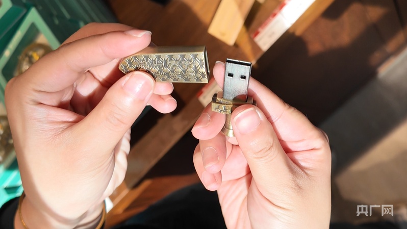 在文创中心,记者遇到了刚结账的靳女士:“冷兵器变U盘,创意又实用!”