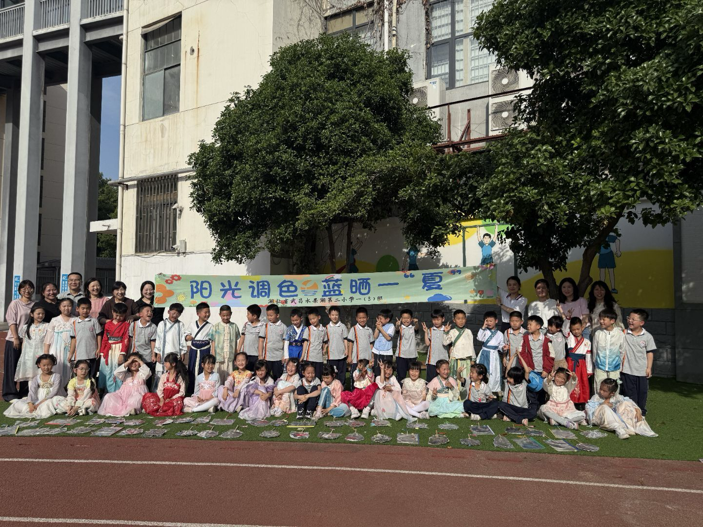 以阳光为笔,以草木为墨,同学们与大自然合作创作出一幅幅美丽的扇面,将时光定格、把美好留住。有的同学还通过蓝晒工艺制作了优美的书签和绚丽的画作。大家在探索与实践中领略了蓝晒技艺的独特美感,萌发出对美的感受和体验,体会到艺术创造的乐趣与不易,感受到非遗文化的魅力与厚重。