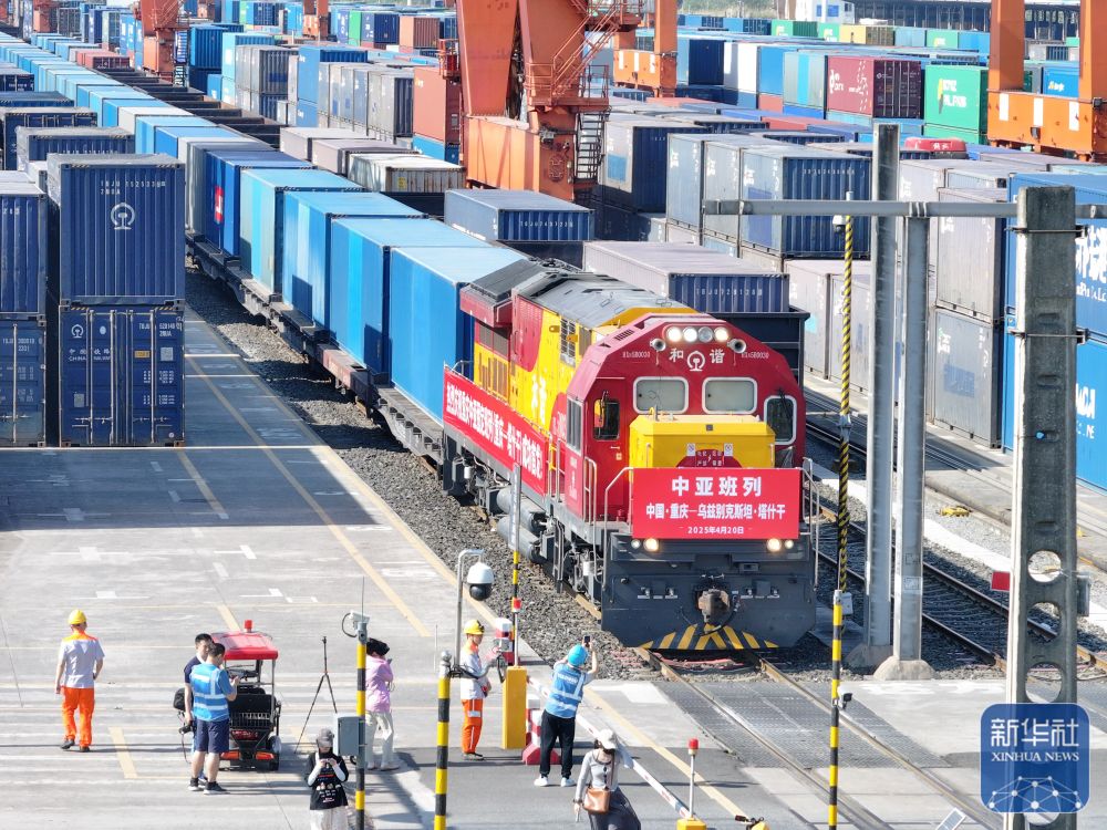 4月20日上午,一列满载“重庆造”聚酯切片的中亚班列,从重庆团结村中心站缓缓驶出,这是重庆首次开行图定中亚班列,此后将以每月2列的固定频次实现常态化开行。