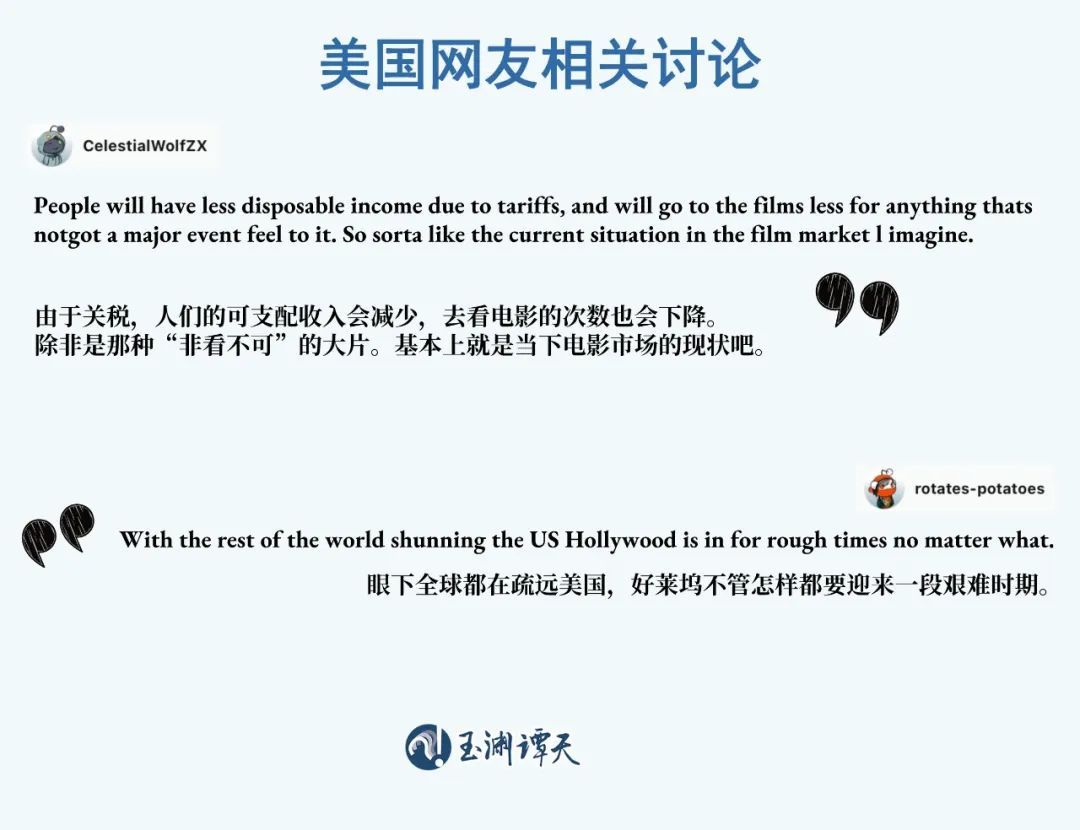 谭主分析过,中国将适度缩减美国电影的进口会产生连锁反应。