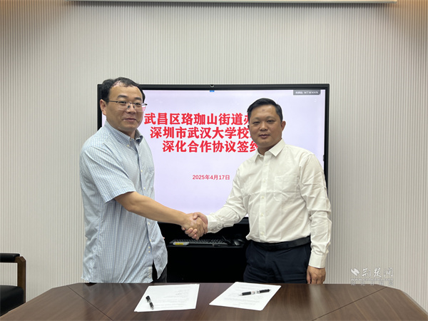 招商小组首站拜访武汉大学深圳研究院、深圳市武汉大学校友会、科技成果转化等议题展开深入交流。珞珈山街道作为武汉大学驻地,提出以中科•武大智谷为核心载体,打造环武汉大学创新发展带。双方现场签订深化合作协议,计划共建“武汉大学大湾区校友回汉创新创业基地”,为校友企业提供政策支持、空间对接及全链条服务,推动人才、技术、资本“洄游”武昌。