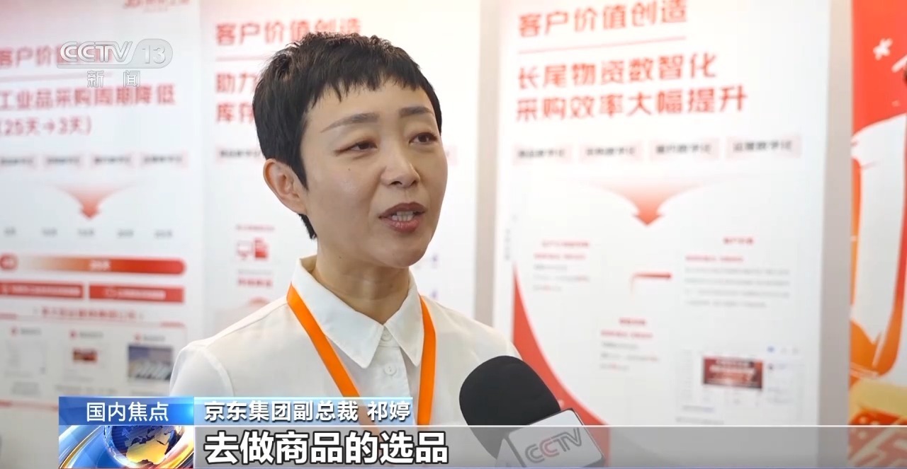 京东集团副总裁 祁婷:我们的团队去现场帮外贸企业做商品的选品,然后到线上的投广告,到我们的客服人员去承接用户的服务,再到上门的打包的动作全都一体化解决,这样能够帮助我们的外贸企业快速转型做内销。