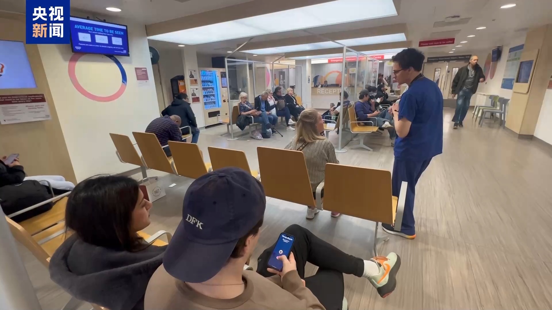 总台记者 陈林聪:我现在是在英国伦敦市中心的一家医院急诊部。大家可以看到,我身后的急诊大厅里挤满了等待就诊的患者。根据最新数据,目前英国全国有近5万名急诊病人因为病情严重需要住院治疗。但现实情况是,这些病人平均要在医院的推车床上等待超过24小时,才能等到一个住院床位。