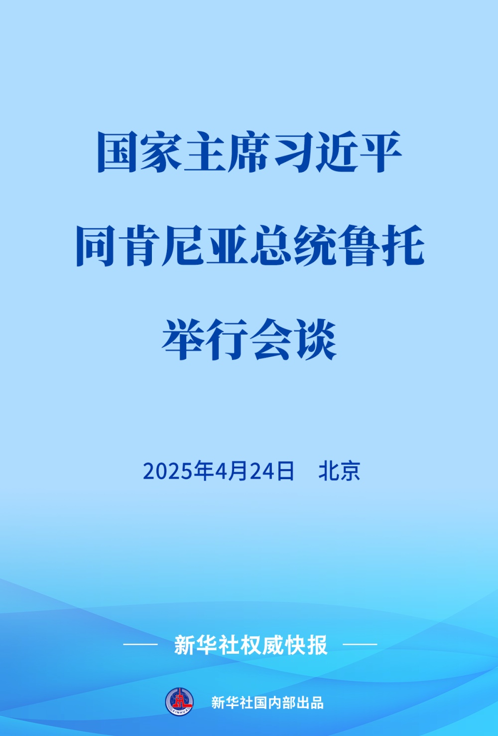 4月24日,国家主席习近平在北京同来华进行国事访问的肯尼亚总统鲁托举行会谈。
