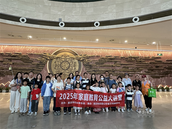 荆楚网(湖北日报网)讯(通讯员 胡玉洁 侯本瑞)为弘扬中华优秀传统文化,增进青少年对本土历史认知,4月20日,武昌区杨园街道临江社区开展家庭教育公益大讲堂“博物有风华”主题亲子研学活动,组织辖区14组亲子家庭走进湖北省博物馆,通过沉浸式观展,让楚文化在亲子对话中焕发新活力。