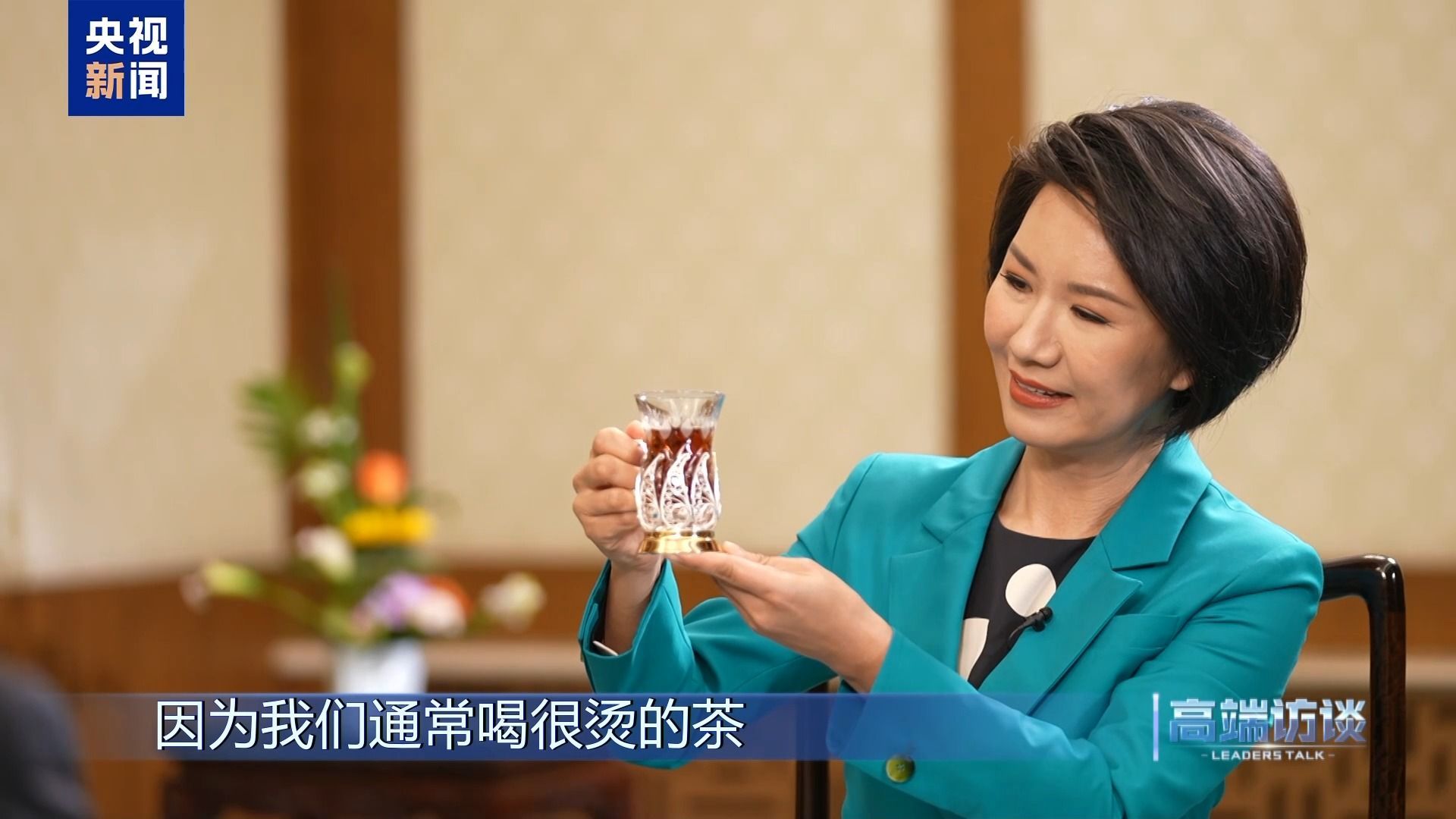 刘欣:也很烫。可能因为您是客人,他们为避免烫到您,所以特别礼貌和小心。但在茶文化上,我们的共同点很多。我们都爱喝茶,尽管方式有所不同。这让我想到许多话题,比如古丝绸之路、人文交流,还有旅游。据我了解,贵国大约一年前开始对中国游客实行单方面免签政策。借此机会,您能否与我们分享一下最新消息?