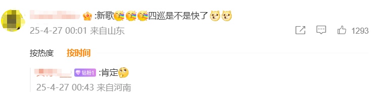 评论区多位粉丝惊喜地表示好好听,并问四巡是不是快了。