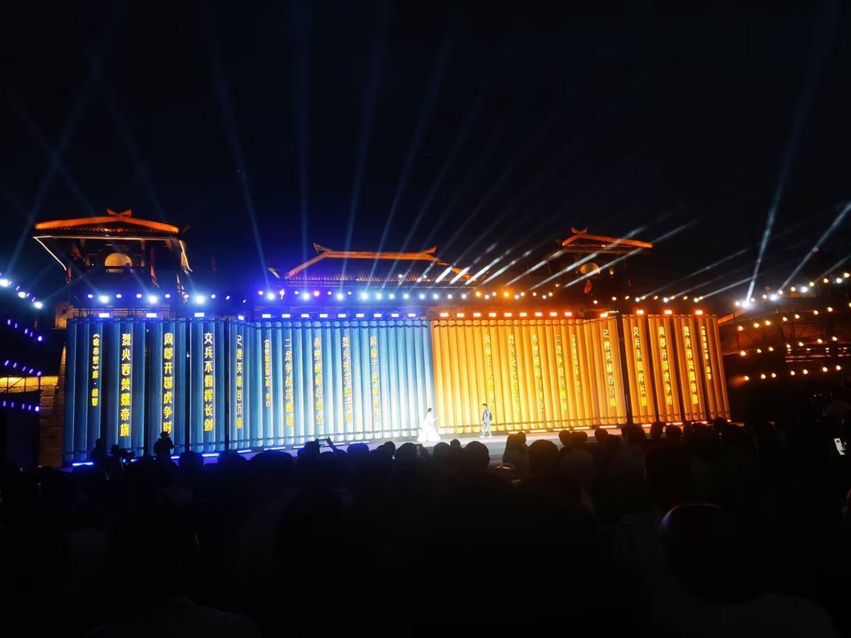 启动仪式结束后,与会嘉宾前往东风大剧院,观看大型三国文化沉浸式演艺《赤壁借东风》的全球首演。《赤壁借东风》由著名导演、跨界艺术家罗可歌担任总导演,突破传统历史剧的叙事框架,引入全息投影、灯光运用等技术,让观众在虚实交织中感受古战场的金戈铁马。