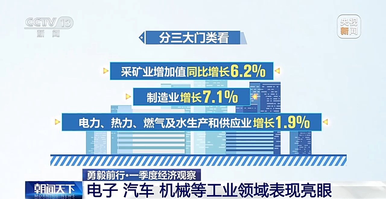今年一季度,电子、汽车、机械三大领域齐头并进,加速工业经济增长,新兴动能持续释放强劲牵引力。