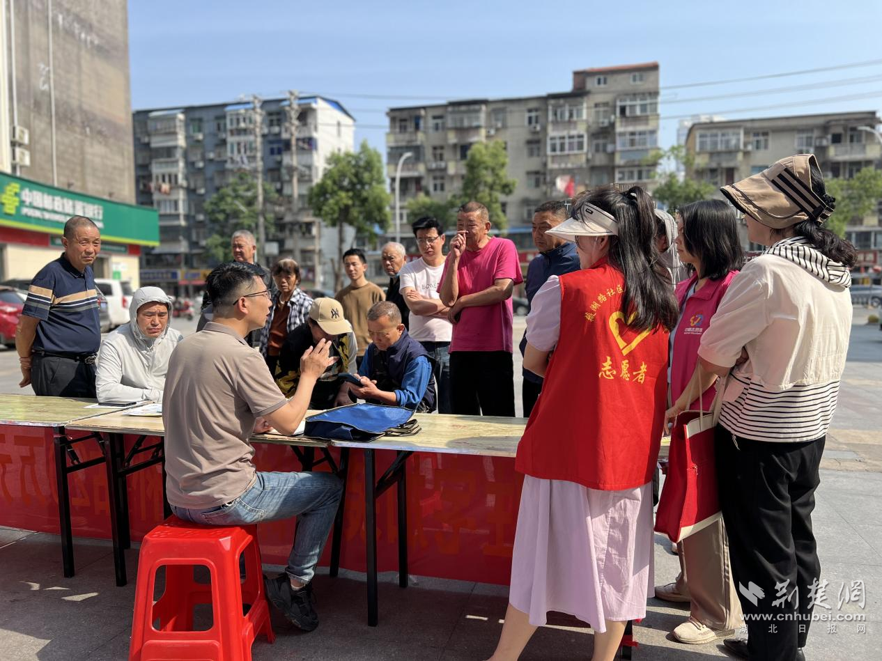 荆楚网(湖北日报网)讯(通讯员彭章程)4月28日,武汉经开区纱帽街道薇湖路社区开展老旧房屋加装电梯政策宣传活动,为辖区居民普及政策,解答疑惑,推动电梯加装工程顺利进行。