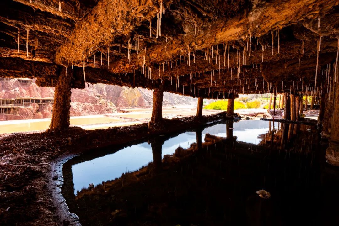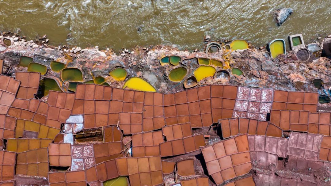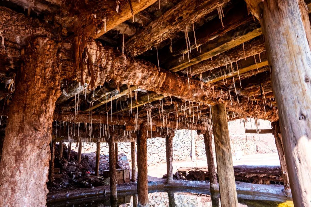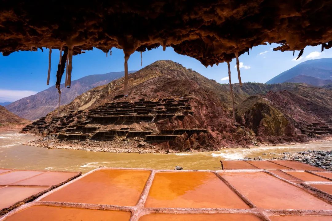 盐田上,60岁的乃柯正和丈夫一起,用木拍夯实盐田。“现在用泵抽水轻松多了,但拍盐田的手艺不能丢。”老人的话语中,既有对科技的接纳,也有对传统的坚守。盐田下方,盐晶垂落成帘,在山风拂动下闪烁微光,仿佛在诉说着千年文明的厚重。
