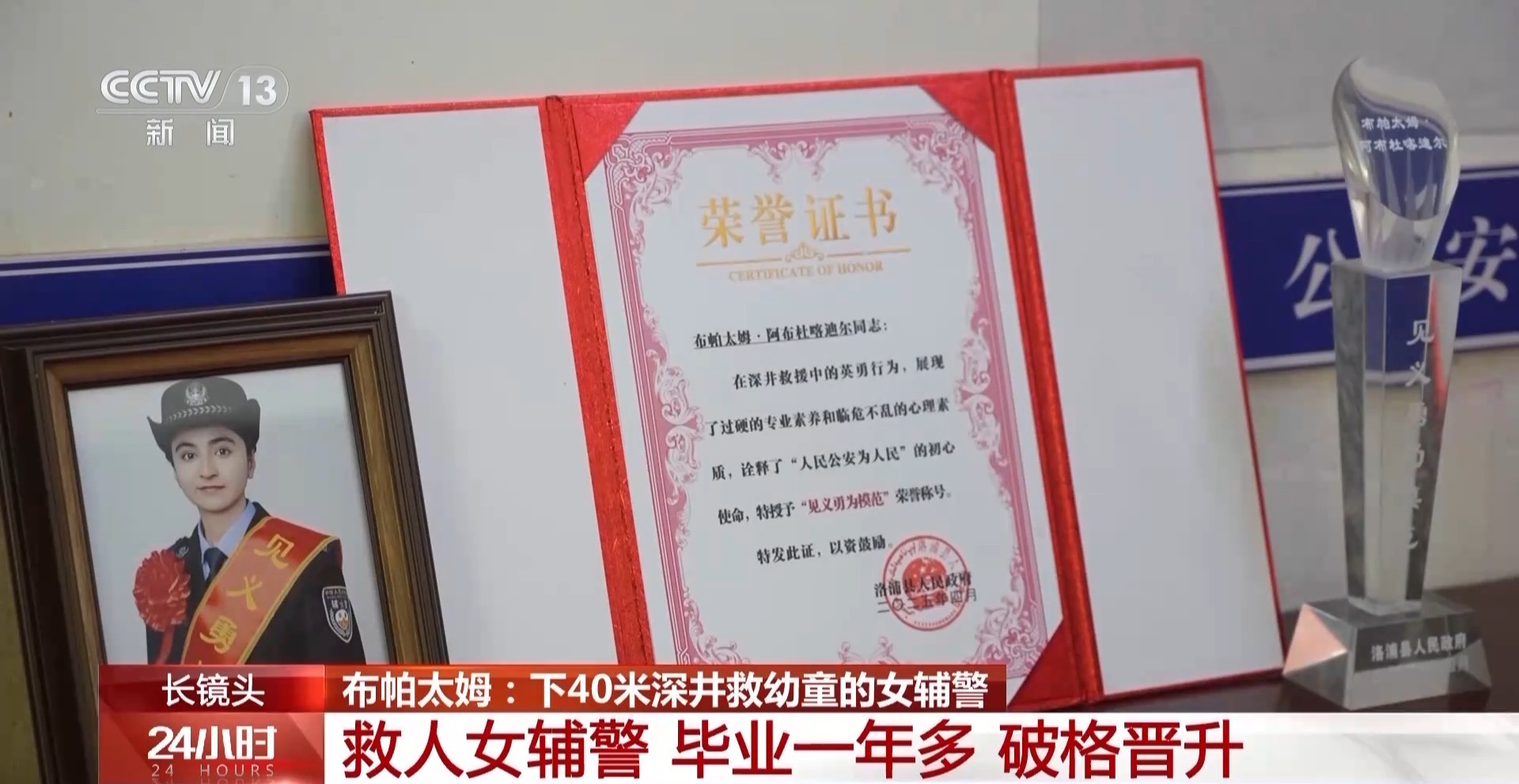 目前,洛浦县公安局已将布帕太姆破格从七级辅警晋升至五级。对于获得的荣誉,布帕太姆认为,自己只是尽到了警察的责任。