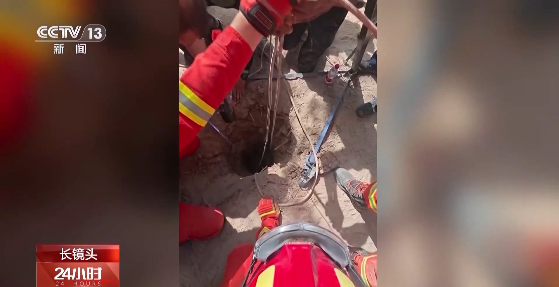 为防止孩子缺氧,救援人员将氧气管伸到井里。经询问村民得知,井里有水有淤泥,孩子很可能是落在了井内一个突起的铁板上,孩子此时大半个身子浸在水和淤泥中。井下空气稀薄,孩子命悬一线,消防员立刻准备下井。