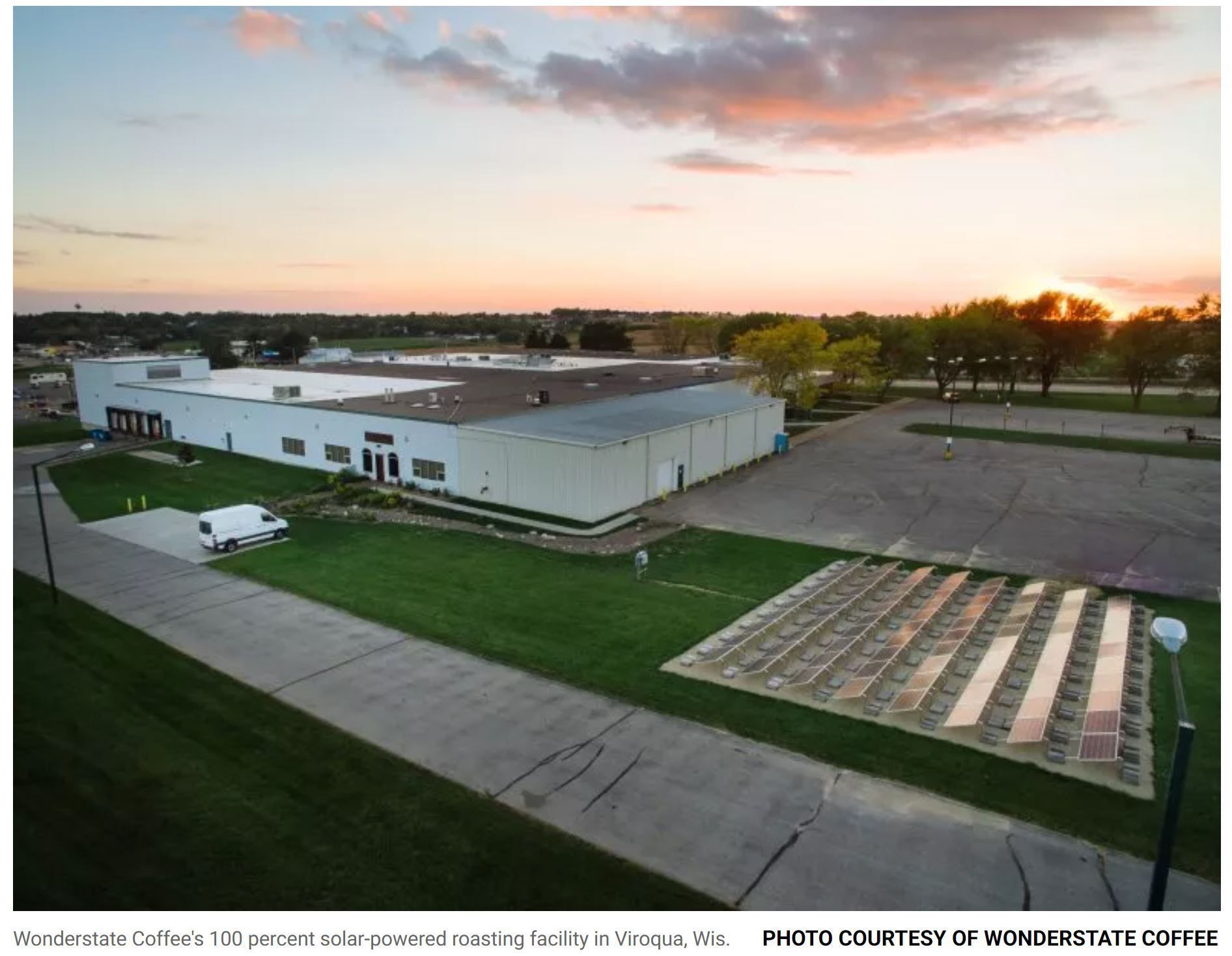 △“神奇国度”咖啡公司位于美国威斯康星州的太阳能烘焙设施(图自《新闻周刊》网站)