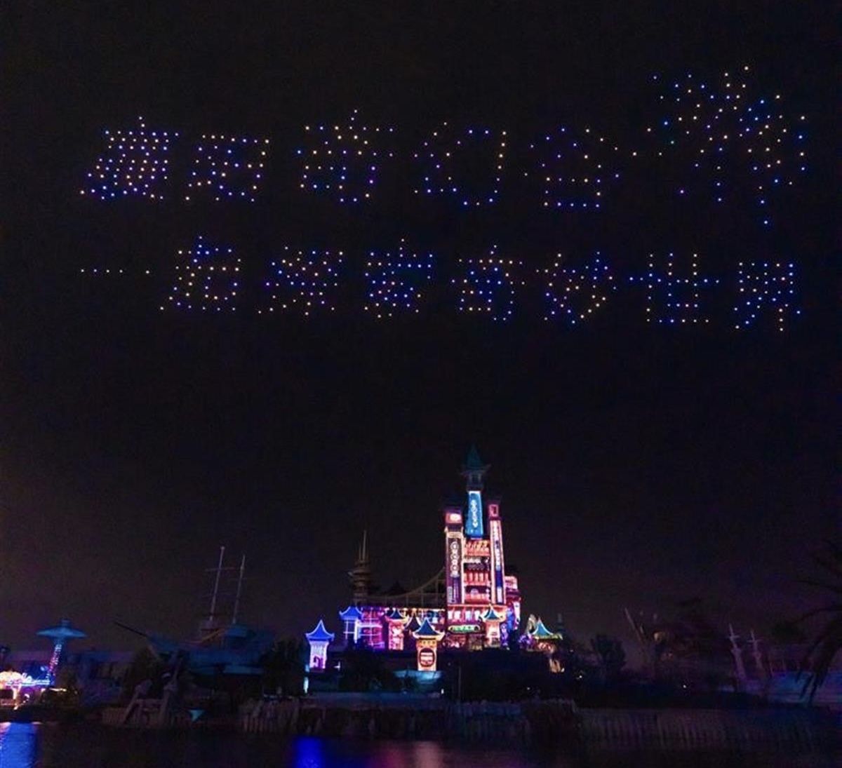 在华侨城奇幻谷,千架无人机化作“天外来客”划破夜空,绚丽璀璨烟花与城堡7D投影交织成星际奇观;无人机、烟花、光影交融,勾勒出襄阳元素。