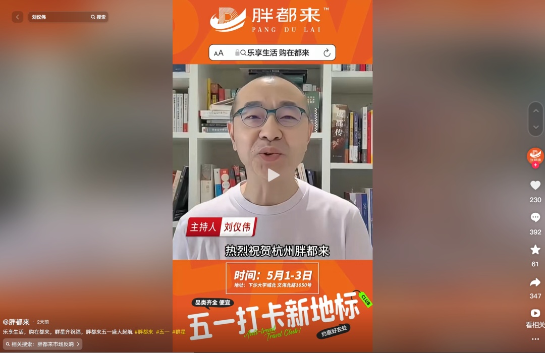 记者注意到,该卖场的社交账号在4月前后就开始进行开业宣传,此前曾发布视频解释称,“胖”寓意着丰盈、富足、美好,这一理念贯穿于他们的经营中,确保商品琳琅满目,价格实惠,服务贴心,“都”字则取自集团董事长的姓氏。