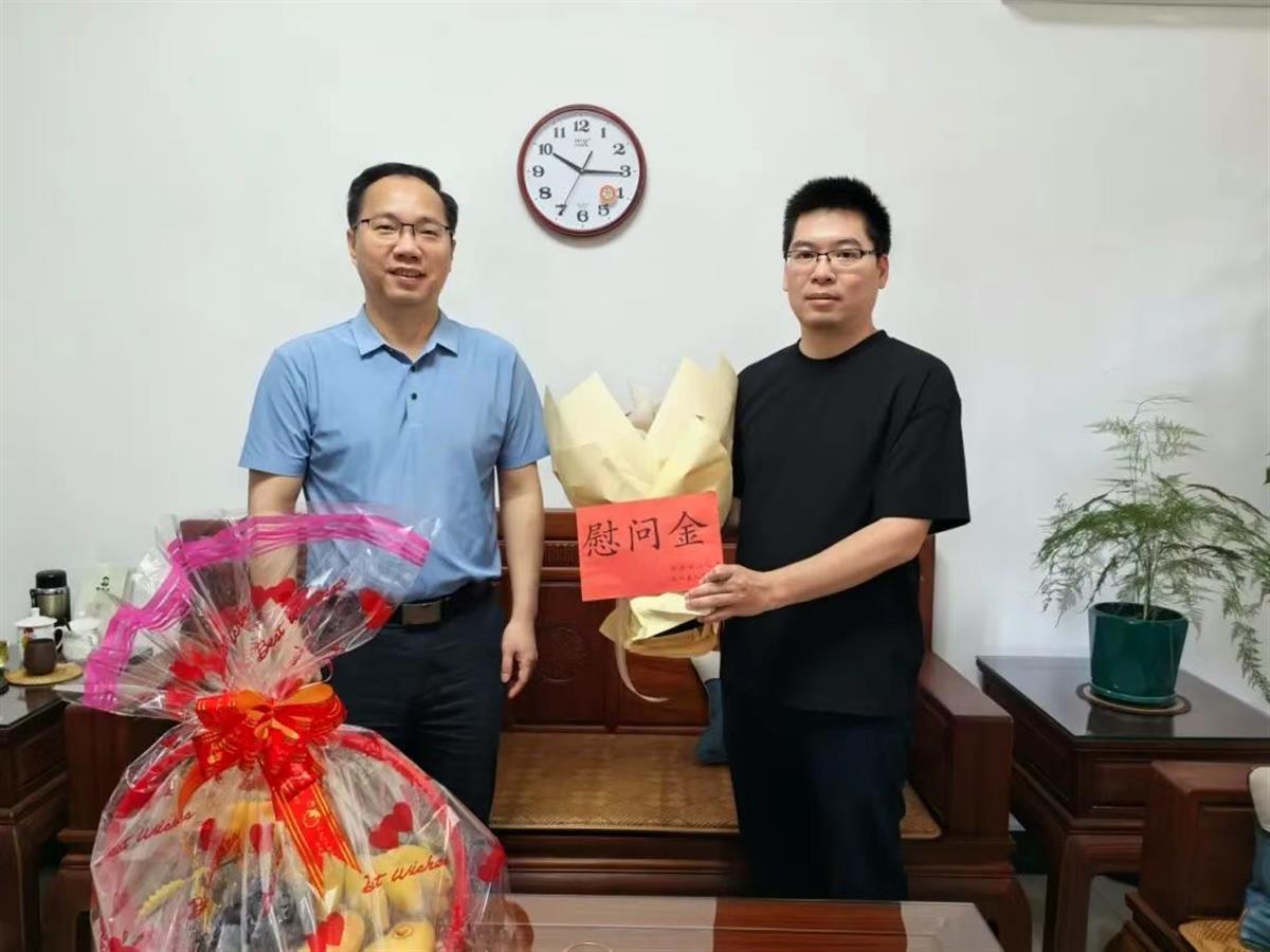 兴县县委书记华关(左)慰问钟威