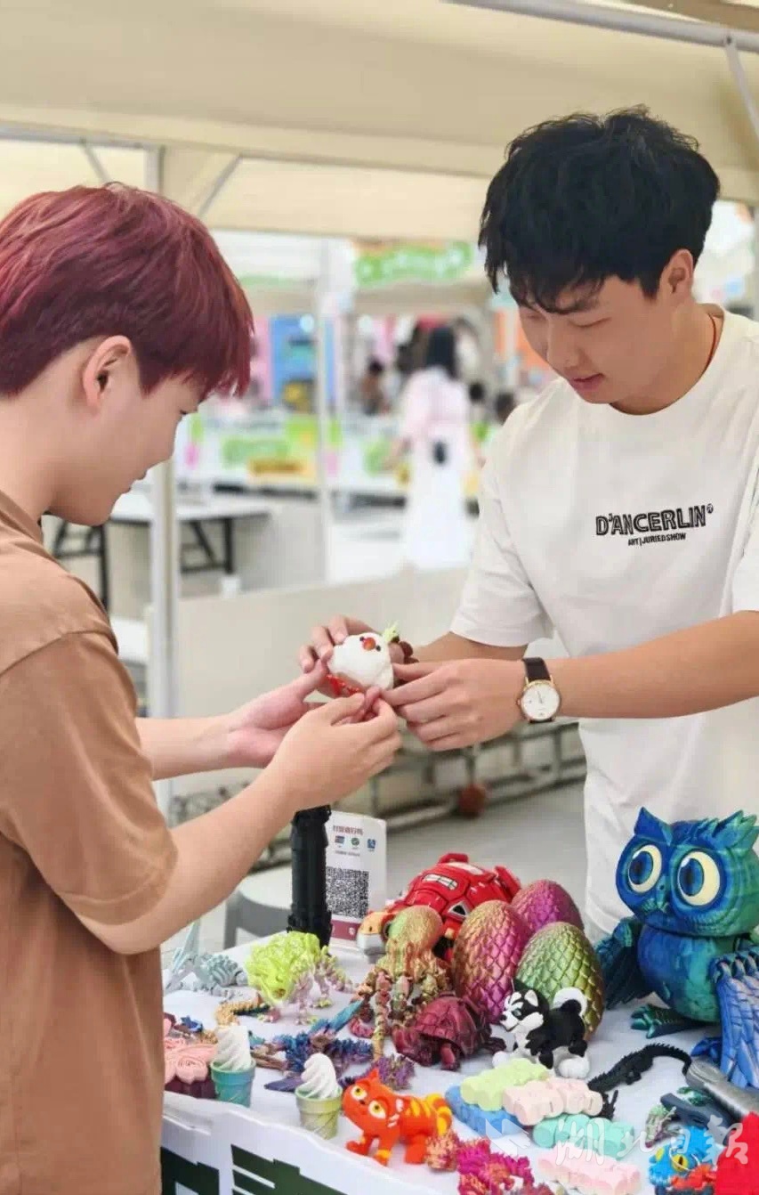 “这是我们3D打印出来的蒜鸟。”5月1日,汉阳汉水玫瑰乐园广场,“青春市集生活节”现场人潮涌动。3万平方米汉江湾花田花海旁,100余个青年创业摊位,为市民游客带来百余款创意好物,吸睛又吸粉。