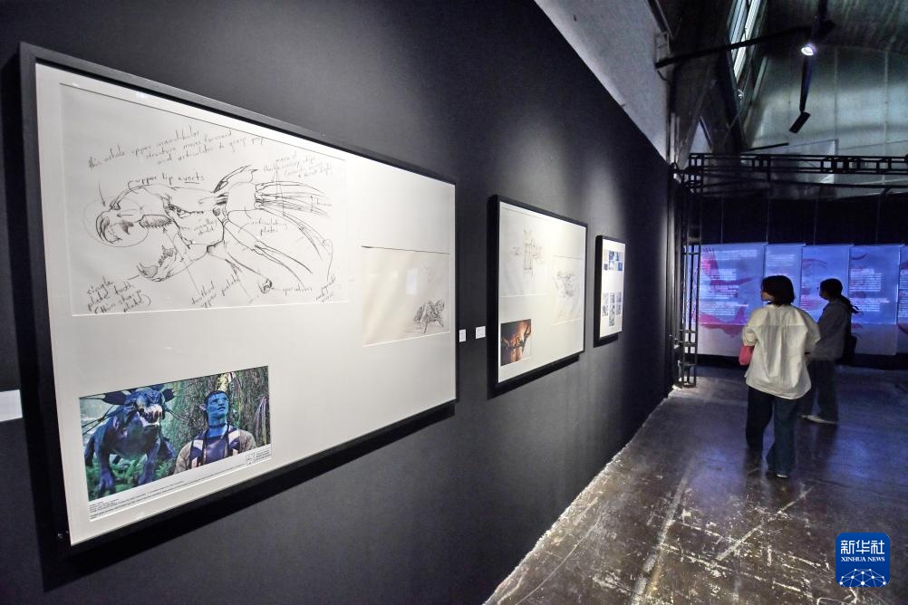 5月4日,游客在798艺术区内参观造梦现场电影艺术展。