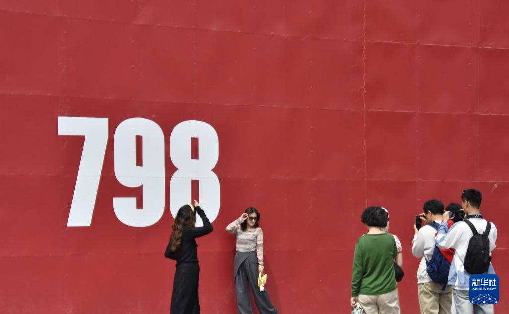 5月4日,游客在798艺术区内游览拍照。