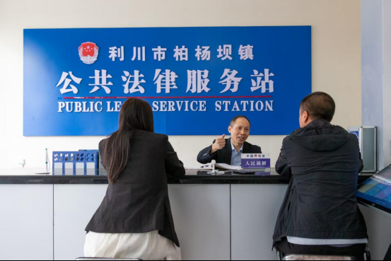 场景一:“乡村振兴法务学院”公共法律服务大厅内,法务学院工作人员雷红兵为前来柏杨避暑游玩的游客解答法律咨询。
