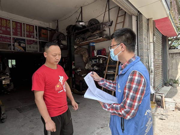 工作人员对辖区个体户、企业开展惠企惠民上门服务活动。 通讯员供图