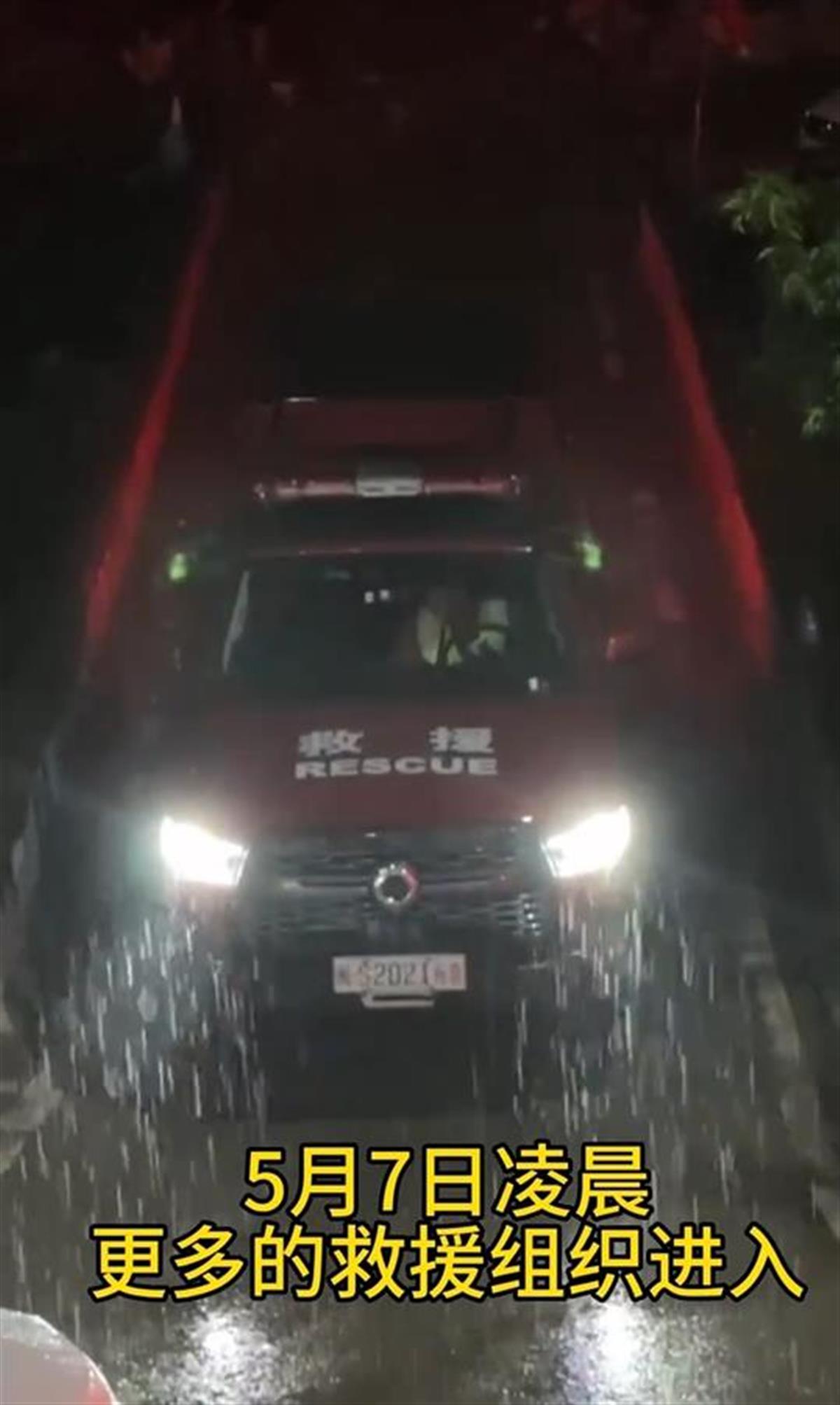 搜救队伍凌晨冒雨进山(视频截图)