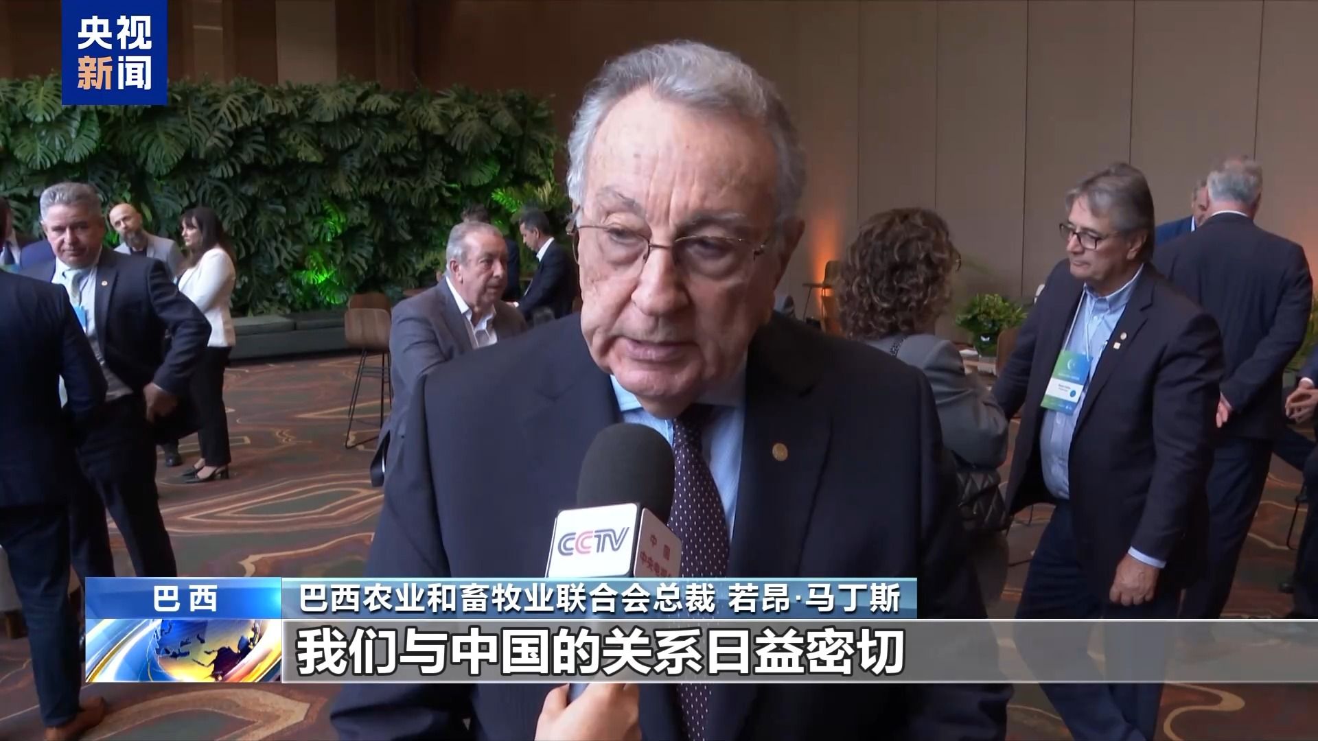 巴西农业和畜牧业联合会总裁 若昂·马丁斯:我们与中国的关系日益密切,我们期望中国继续成为巴西农业非常重要的合作伙伴。