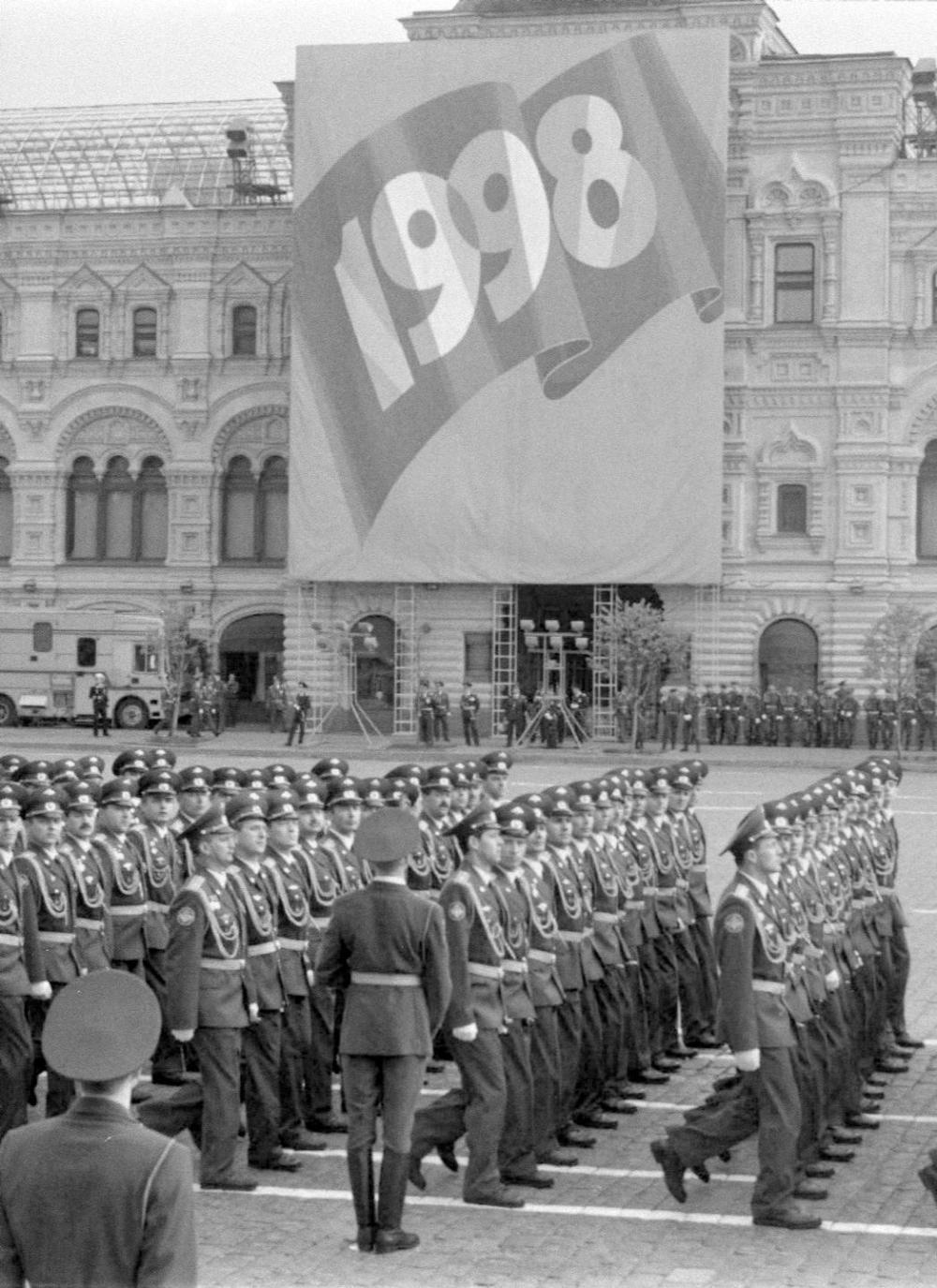 1998年5月9日,军人在俄罗斯莫斯科红场举行的纪念卫国战争胜利53周年阅兵式上接受检阅。新华社记者胡海昕摄