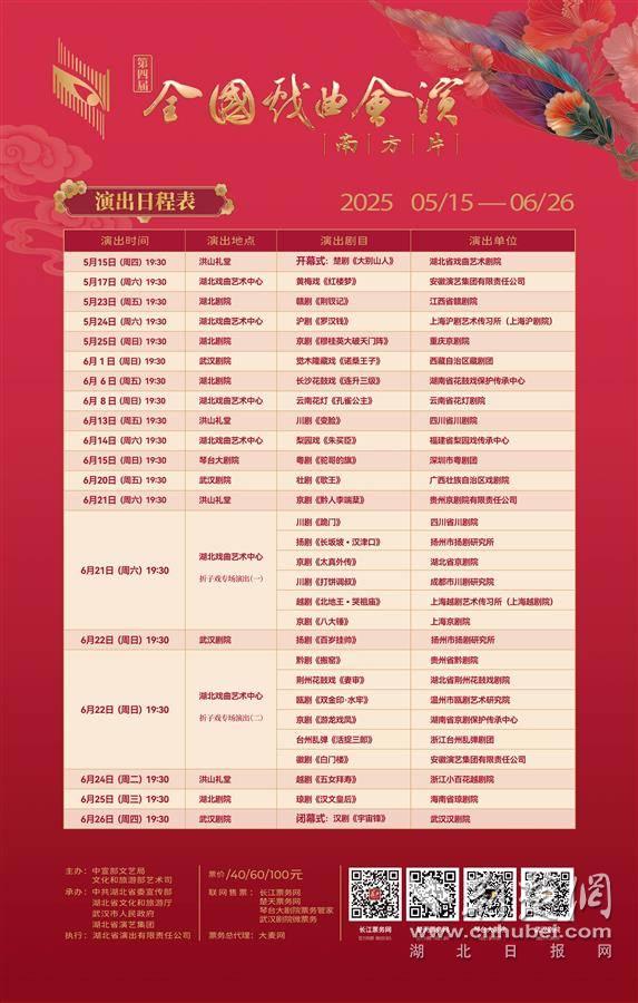 武汉是历史悠久的戏曲大码头。近年来,湖北省持续推进武汉戏曲“大码头”振兴,自2017年以来,已连续成功举办了三届全国地方戏曲南方会演,充分展现了戏曲守正创新的成果,为广大观众献上了高水平的戏曲盛宴。