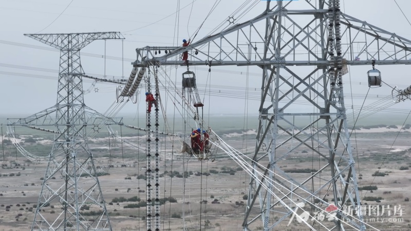 在巴州—铁干里克—若羌750千伏输变电工程现场,银线穿过“死亡之海”塔克拉玛干沙漠的场景令人震撼。