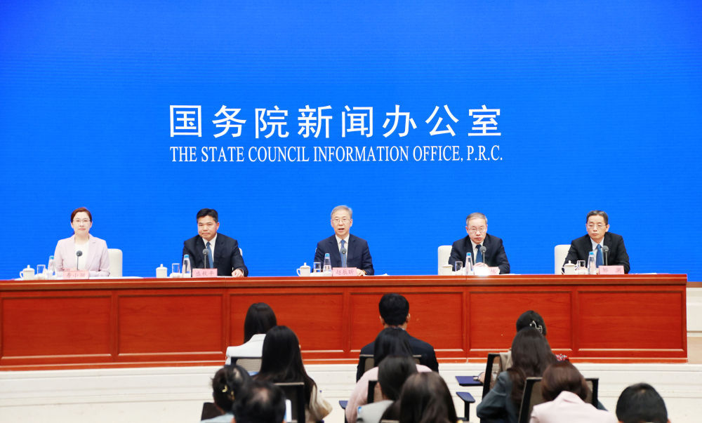 4月28日,国务院新闻办公室在北京举行新闻发布会,国家发展改革委副主任赵辰昕、人力资源社会保障部副部长俞家栋、商务部副部长盛秋平、中国人民银行副行长邹澜介绍稳就业稳经济推动高质量发展政策措施有关情况,并答记者问。新华社记者 潘旭 摄
