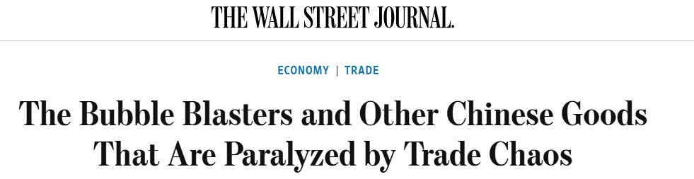 近期接受《华尔街日报》采访时,一位美国玩具进口商这样说。其从中国订购的产品原本要参加美国电视购物公司QVC的夏季促销活动。在美国政府宣布对中国产品加征145%的关税后,QVC冻结了订单。这位进口商估算,自己已因关税失去了约100万美元的新生意。