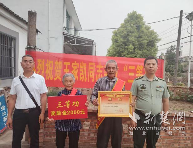 荆楚网(湖北日报网)讯(通讯员李浩、韦雪梅)为进一步弘扬拥军优属光荣传统,营造拥军优属的浓厚氛围,近日,由石首市人武部、市退役军人事务局、乡镇(办)负责人、服务站工作人员组成的送喜报小组,为立功受奖的现役军人家庭送去荣誉与关怀。