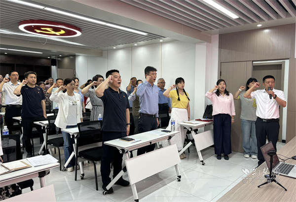活动在庄严的入党誓词中拉开帷幕,西厂口社区党委书记杨署带领全体党员重温誓词,激励着党员们永葆初心、践行使命。紧接着,社区党员代表与武汉市第三医院消化党支部党员共同诵读《中国共产党章程》总纲相关章节,进一步凝聚服务群众、为民造福的思想共识。