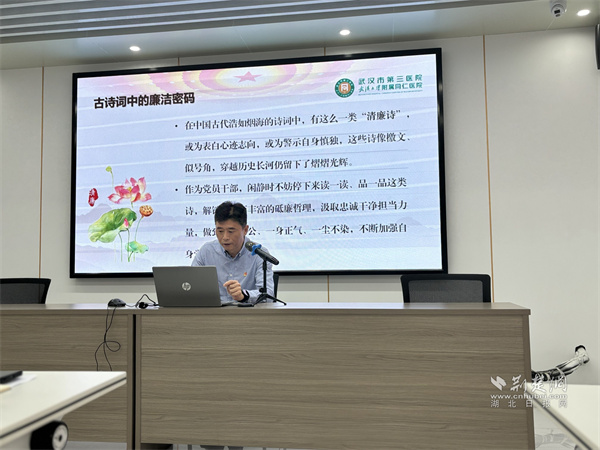 活动中,武汉市第三医院党委副书记、纪委书记姚群现场讲授《慎独、轻财、为民》专题党课,深入解读党员干部如何在服务群众的过程中坚守廉洁底线、践行“为民”初心,并号召在场全体党员干部将八项规定精神内化为价值准则,以切实行动持续推进作风建设。