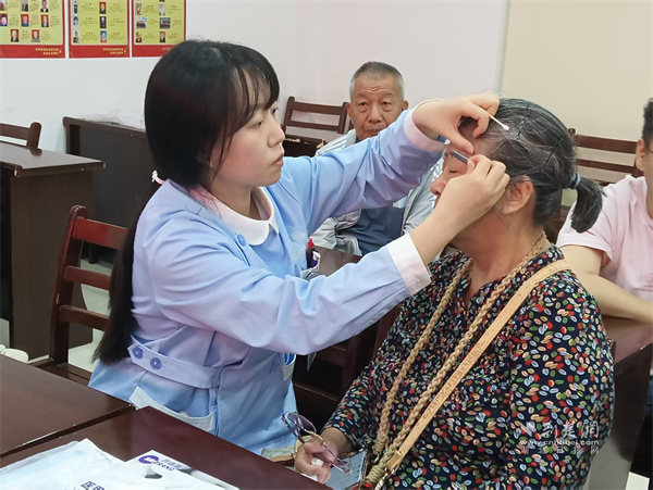 医护人员为居民修饰眉形。 通讯员供图