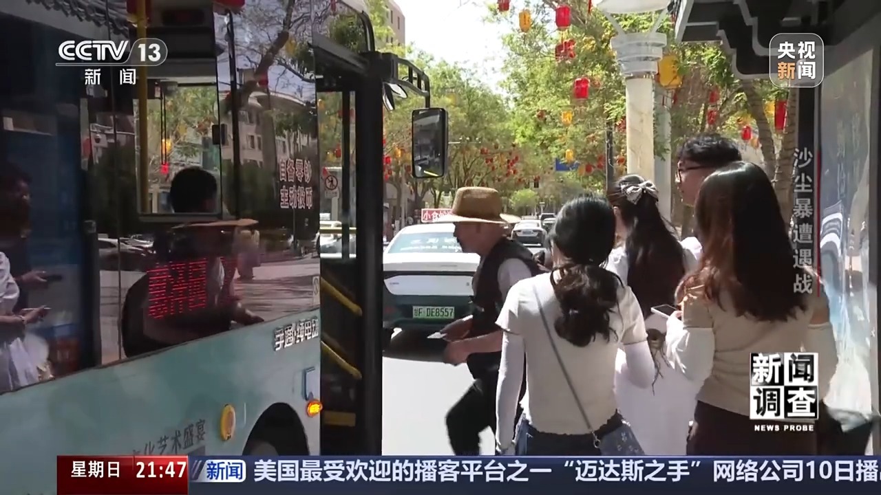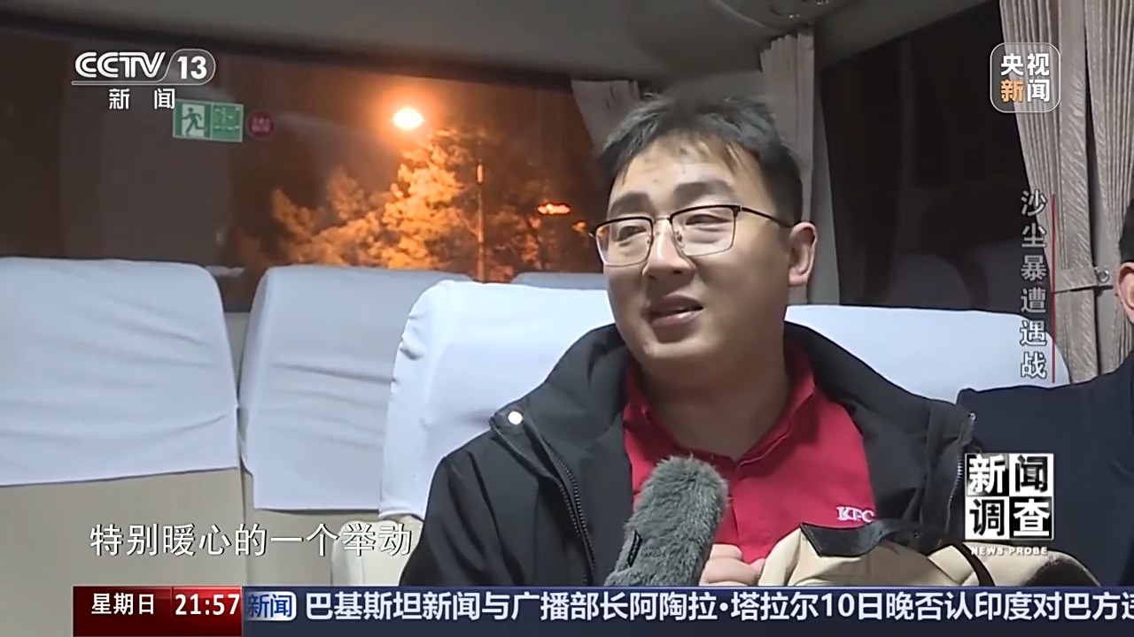 游客:风沙这么大,然后咱们政府还派免费的公务车,把游客接送到市区,特别暖心的一个举动。