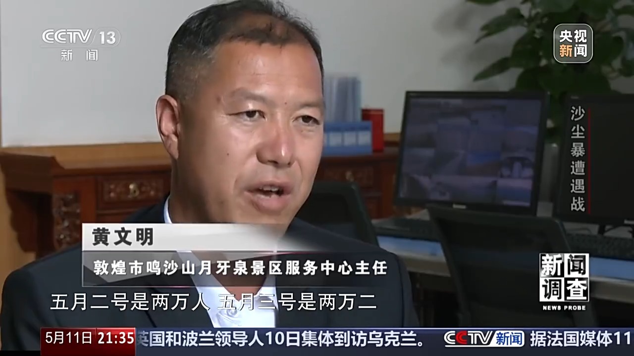 敦煌市鸣沙山月牙泉景区服务中心主任 黄文明:5月1日是一万九,5月2日是两万人,3日是两万二。