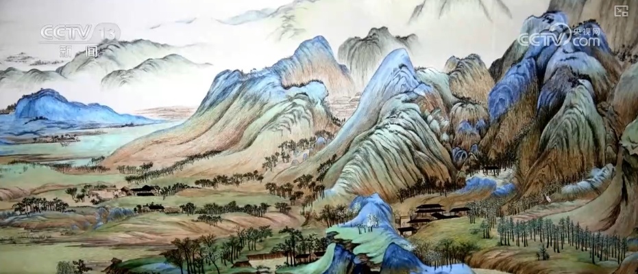 汴绣擅绣历代书画名作,多以书法、山水、花鸟、楼阁、人物为题材,代表性绣制的名画作品有《清明上河图》《九歌图》《百骏图》等。汴绣作品《千里江山图》,大面积使用平针绣、蒙针绣、散套绣的针法,再现原作江河交错烟波浩淼的雄伟壮丽。
