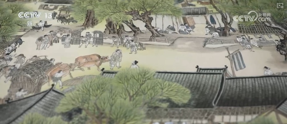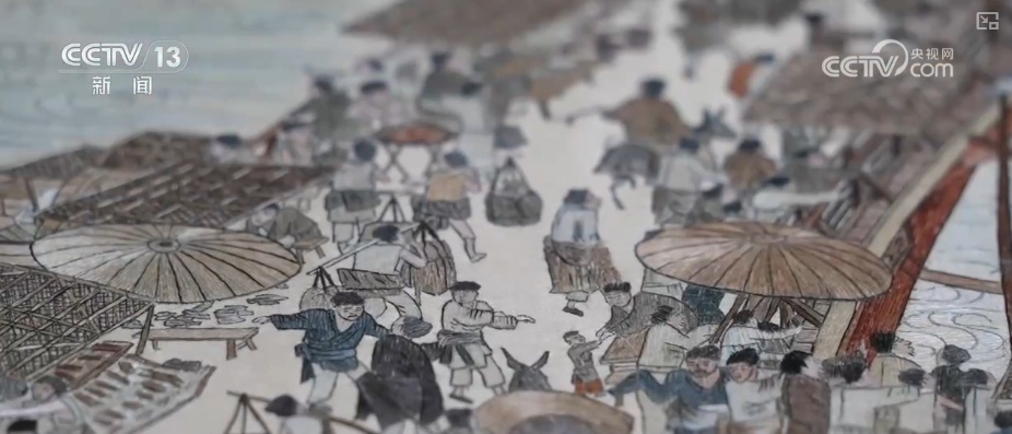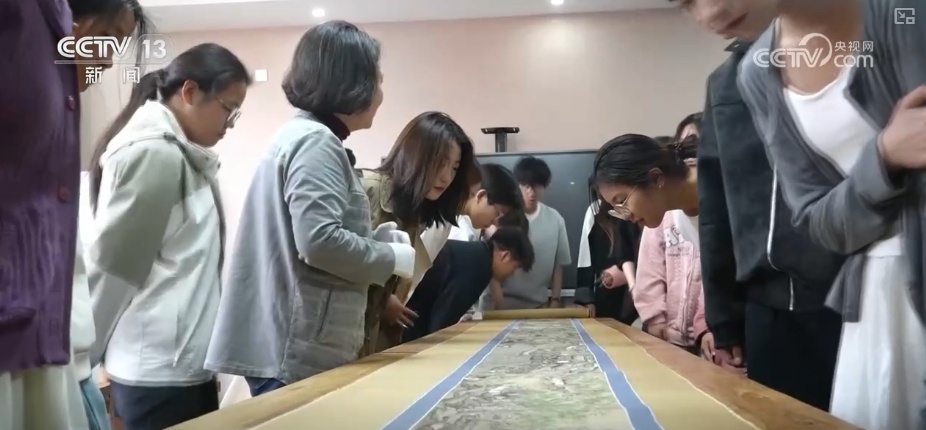 这幅汴绣作品按照原作5.28米的长度进行绣制,用到的针法有18种。随着卷轴的徐徐打开,同学们仿佛一下子回到了繁华热闹的宋朝。绘画艺术融合针线语言,将原作中800多个的人物,以及动物、船只、建筑等复制在汴绣艺术的长卷上。