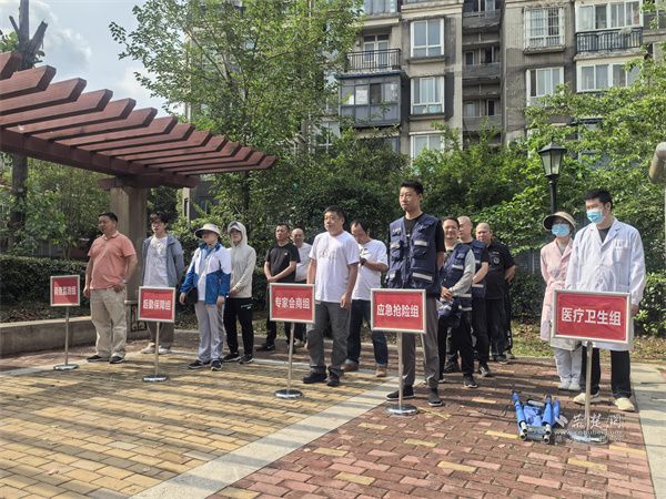 此次演练以持续强降雨引发地面塌陷险情为背景。演练现场,社区工作人员化身“监测员”,迅速将险情上报应急指挥部,并立即启动内部应急响应机制,通过社区广播、微信群等渠道,及时向居民发布预警信息,提醒大家做好避险准备。