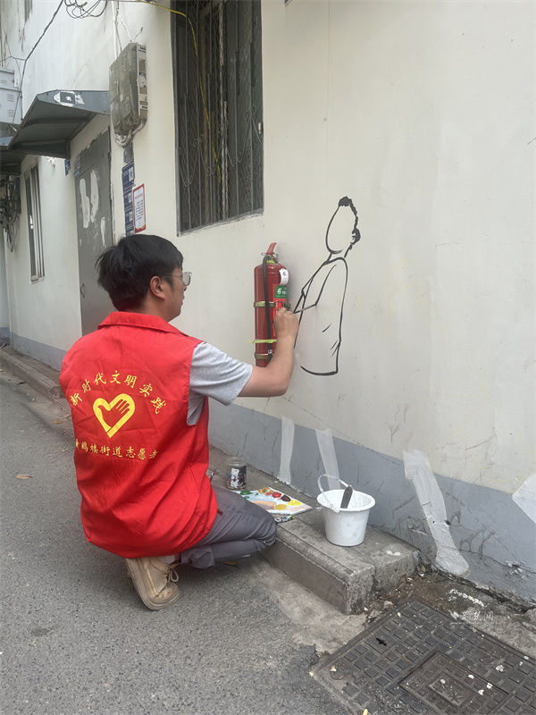 社区邀请辖区青少年化身新时代文明实践志愿者,参与到墙绘创作中。经过志愿者的精心绘制,原本冰冷的消防知识化作一幅幅鲜活画面:卡通图示展示器材使用方法,趣味标语传播安全理念,消防安全涂鸦与墙边的娇艳花朵、青翠绿植相映成趣。