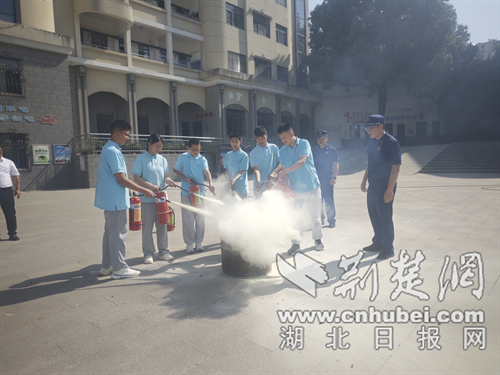 消防宣传员教师生如何正确使用灭火器。通讯员供图