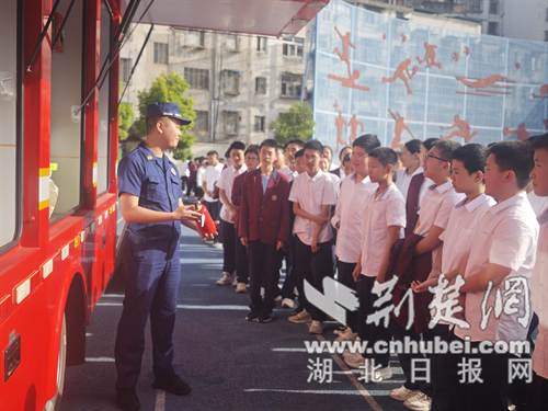 “握住喷管对准火苗根部,压下把手!”在荆门市外语学校操场,消防员手把手指导学生操作灭火器。随着阵阵白烟腾起,参与演练的学生迅速扑灭火盆火焰,赢得围观师生阵阵喝彩。消防云梯车缓缓升起,数十米高空作业的震撼场景让学生们惊叹不已。“原来消防员叔叔每天都要进行这么专业的训练!”七年级学生小李在体验完消防服的穿戴后,对消防员的敬佩之情溢于言表。