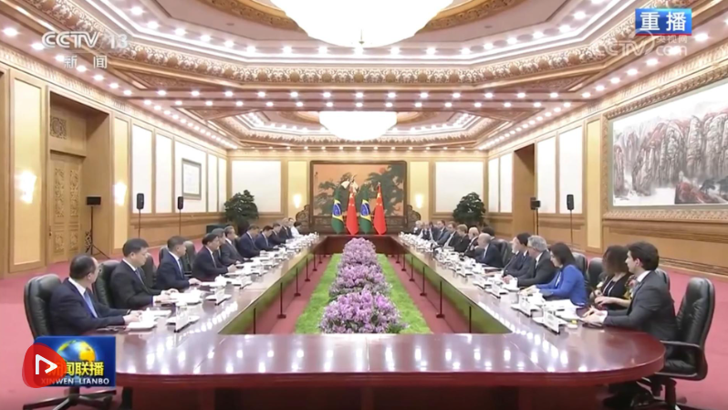 5月13日下午,国家主席习近平在北京人民大会堂同来华进行国事访问的巴西总统卢拉举行会谈。