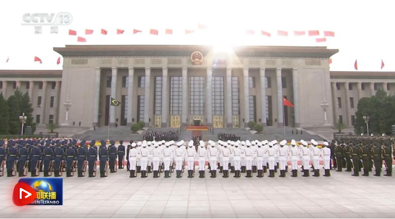 卢拉抵达时,礼兵列队致敬。习近平同卢拉登上检阅台,军乐团奏中巴两国国歌,天安门广场鸣放礼炮21响。卢拉在习近平陪同下检阅中国人民解放军仪仗队,并观看分列式。